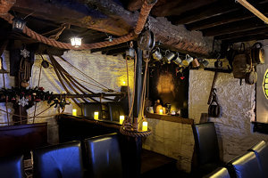 During renovations in 1932, part of the Cellar was discovered to be 'partitioned off' with a false wall. When removed, the old tunnel was discovered, leading from the small hidden room and passage out towards the quay.